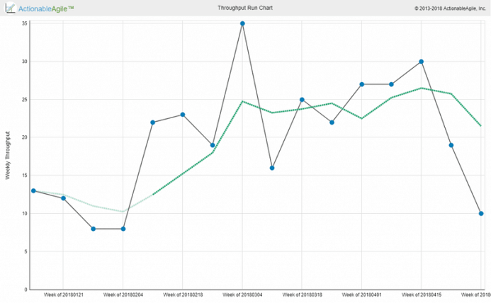 Note: The charts above were created using the demo version of ActionableAgile Analytics — a tool created by my co-steward of the Professional Scrum with Kanban class — Daniel Vacanti. You can access the demo yourself and play with these metrics and think about how they would help your Scrum team.