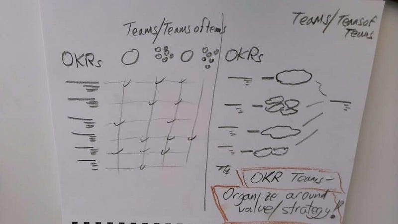 If you’re using OKRs One question to ask yourself is what is the relationship between OKRs and teams/teams of teams. If most OKRs require a multitude of teams across the organization/portfolio to achieve them, this will require a lot of coordination.
